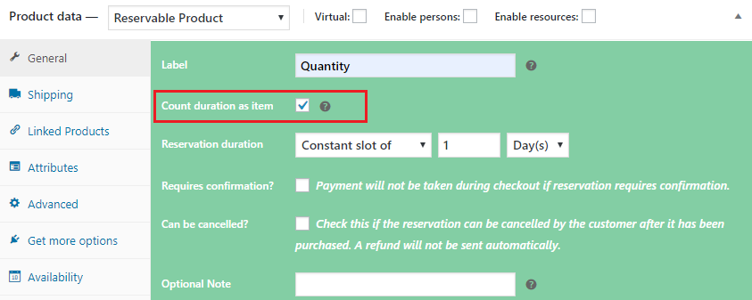Please note: When you use this option, each booking will be counted as 1 booking regardless whatever number is inputted by the user in the duration field.
