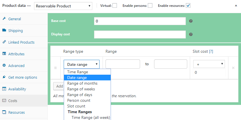 How Costs Settings Work